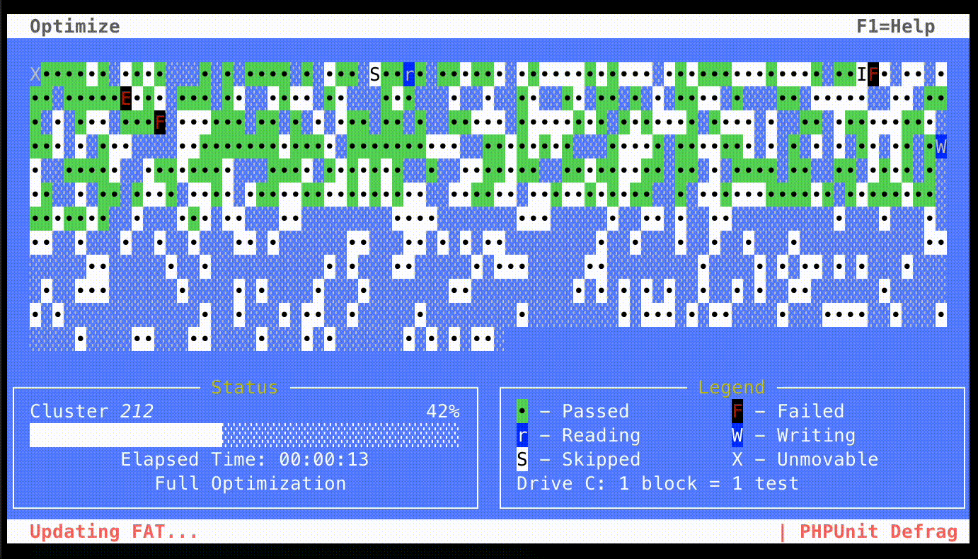 benholmen/defrag – Вывод результатов дефрагментации диска для тестов PHPUnit.